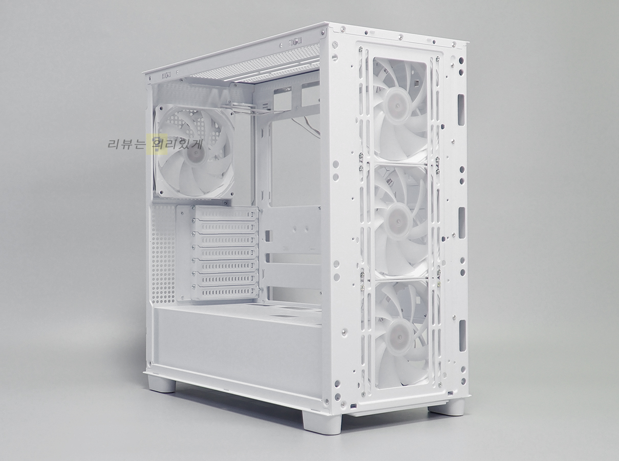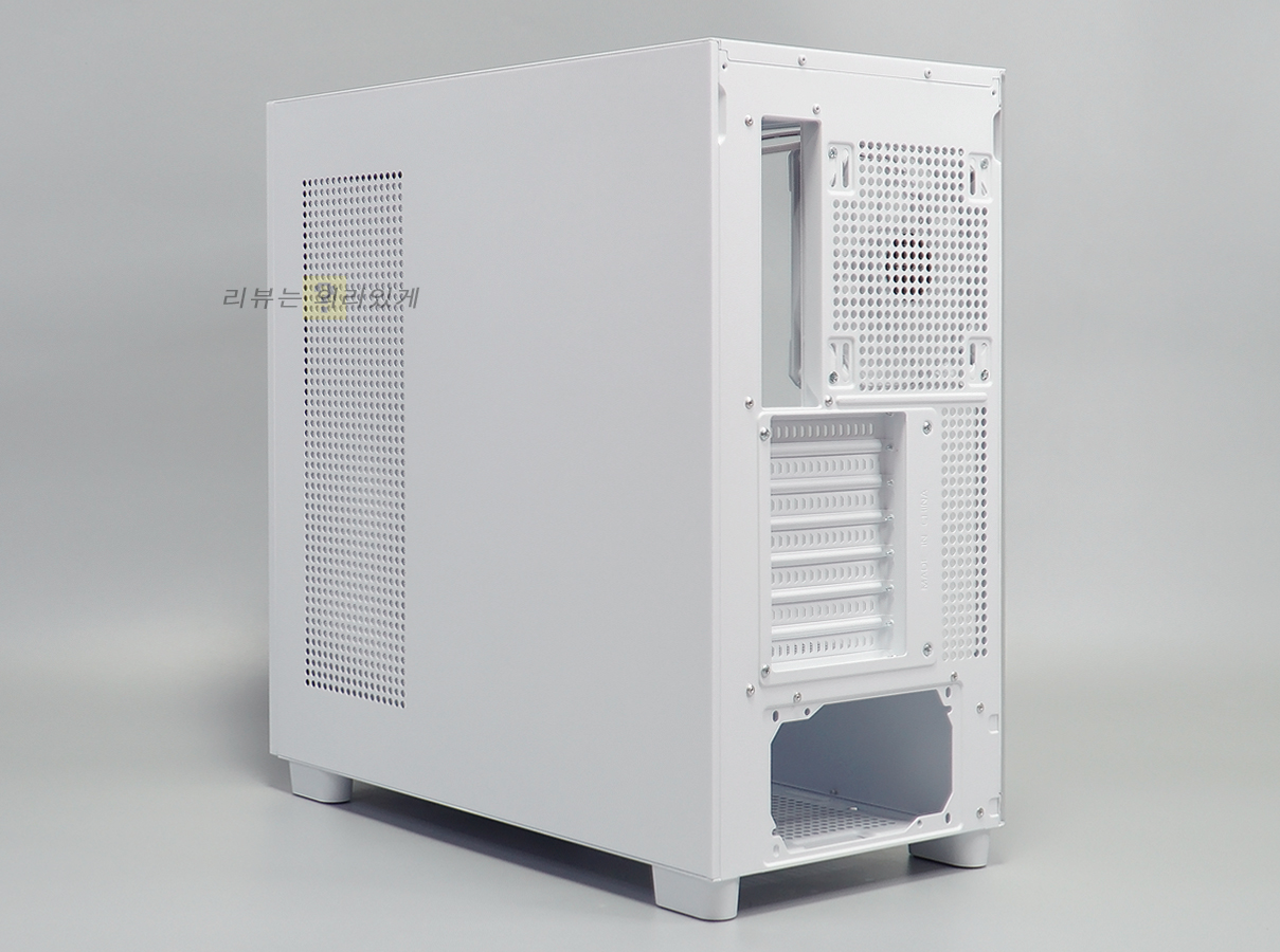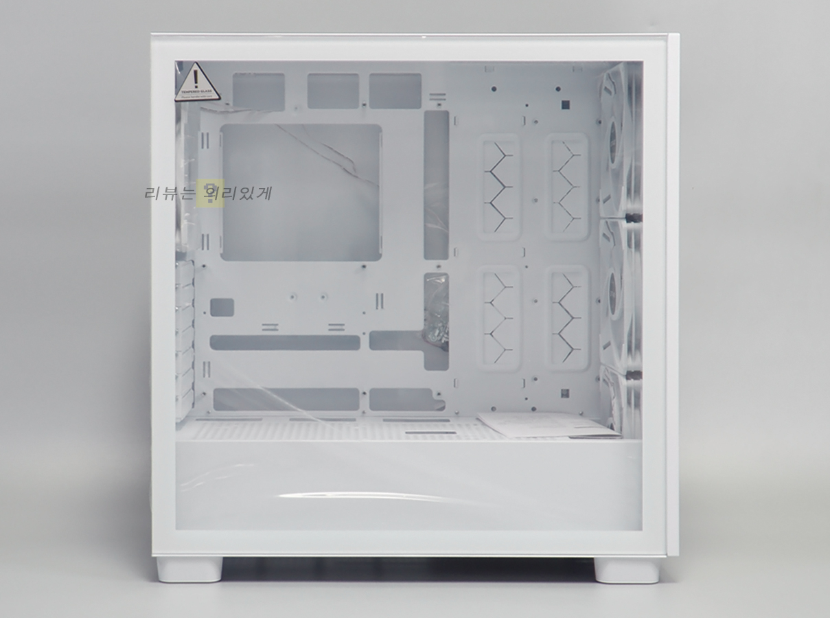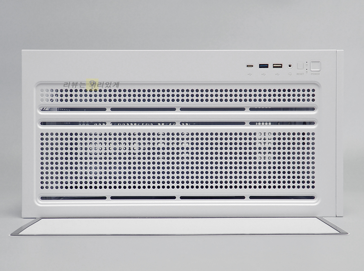 측면에는 강화유리와 패널이 사용되었으며 쿨링을 위해 측면 패널에는 타공 구조가 추가되었습니다.
