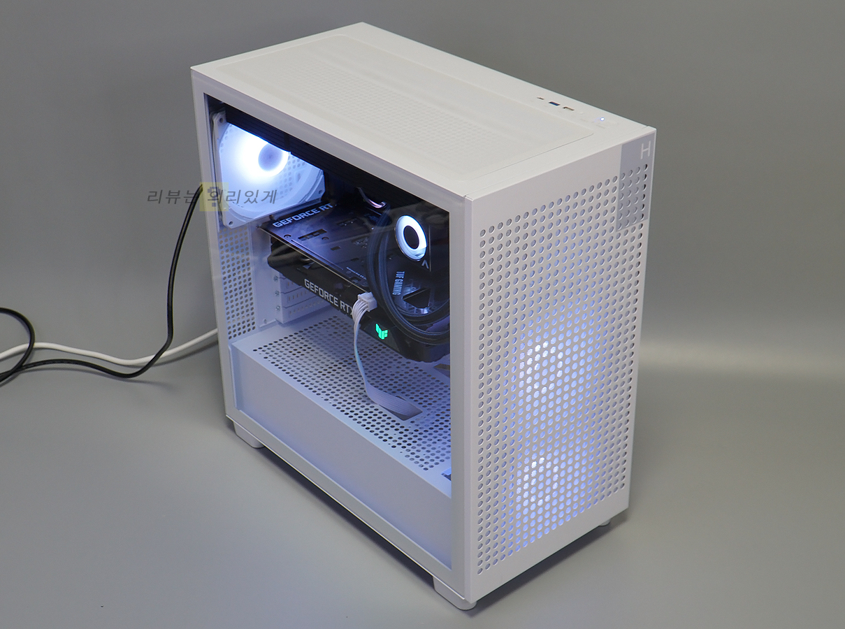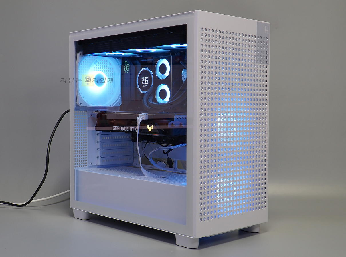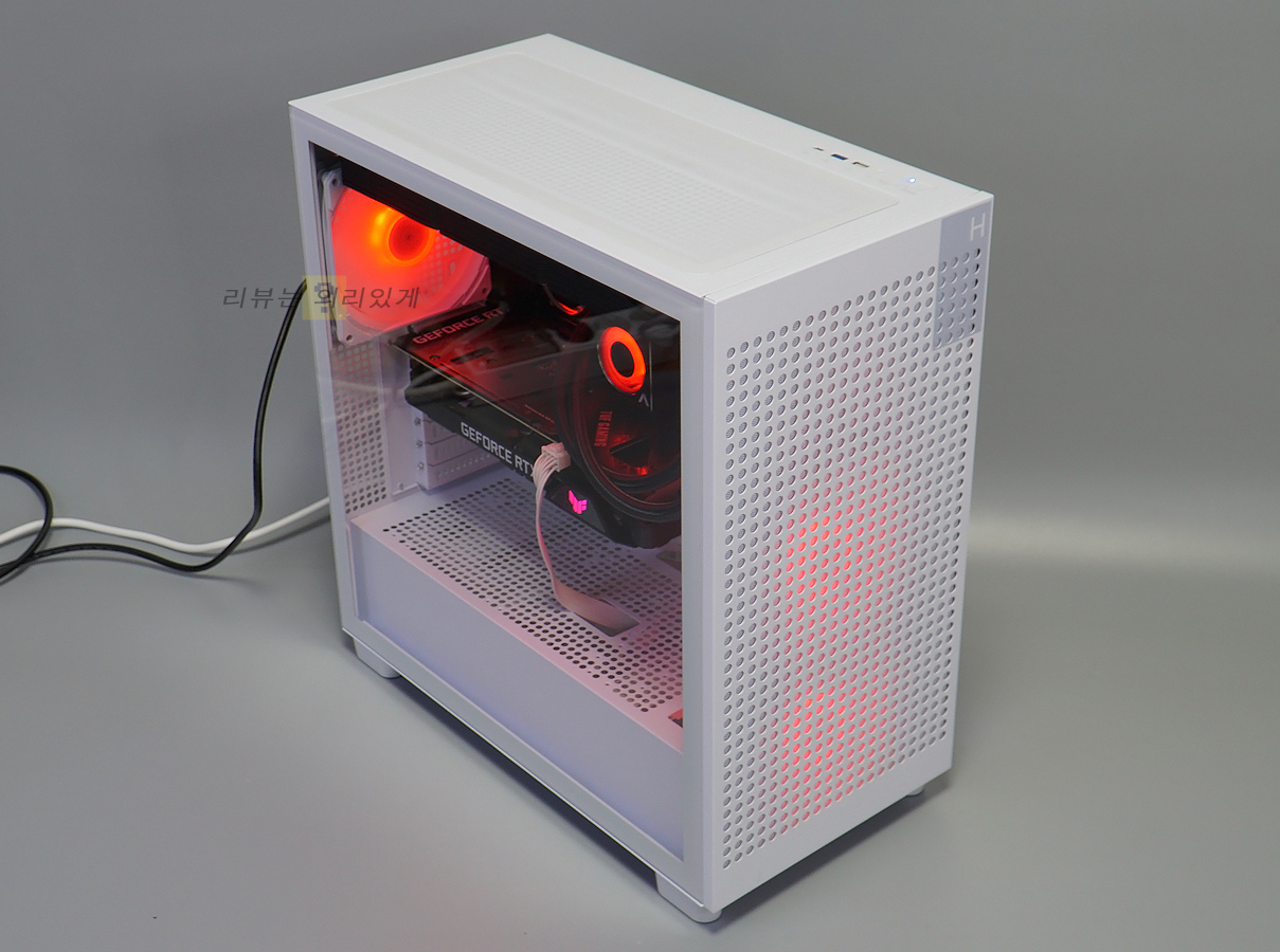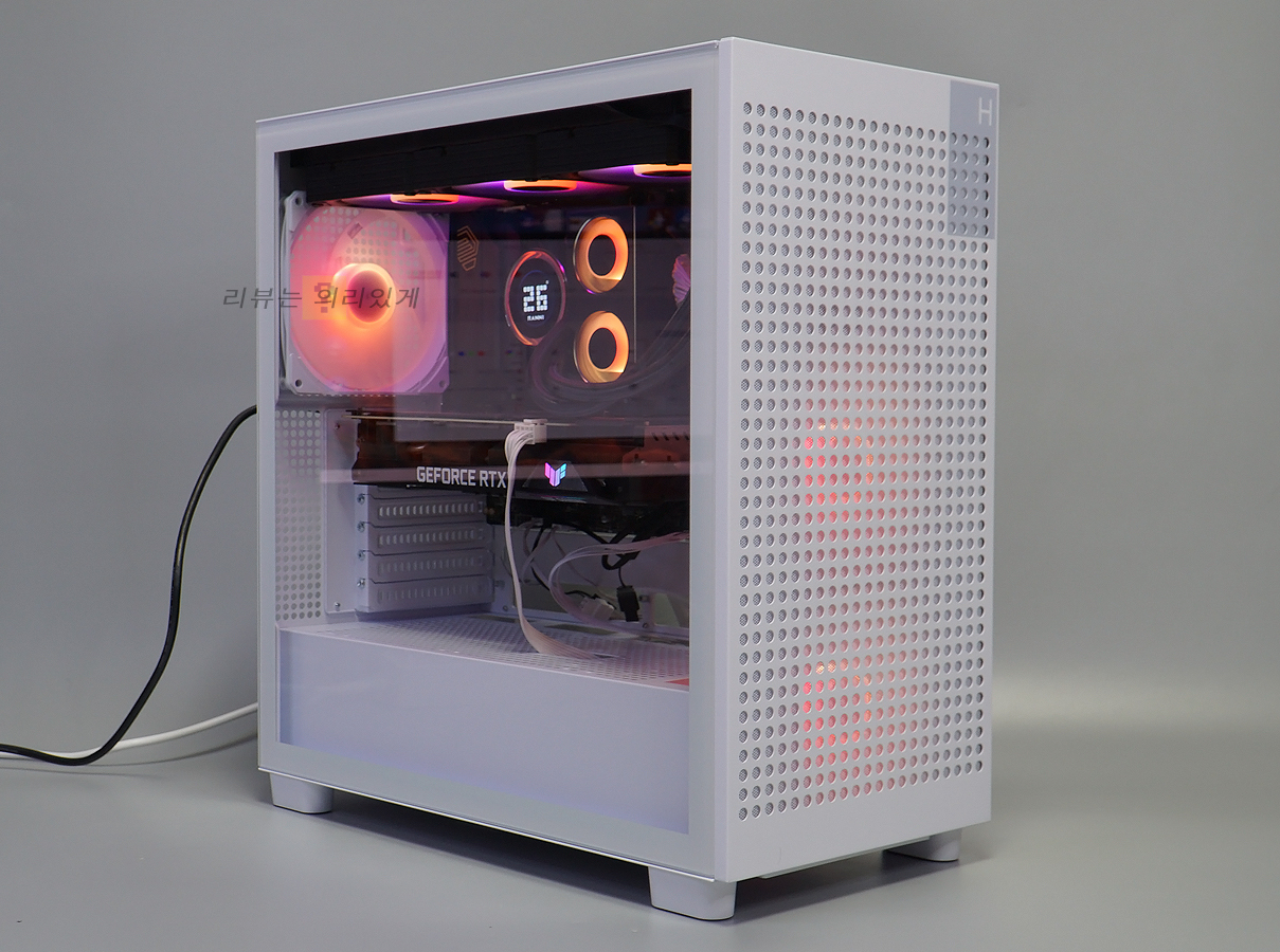 측면에는 강화유리와 패널이 사용되었으며 쿨링을 위해 측면 패널에는 타공 구조가 추가되었습니다.