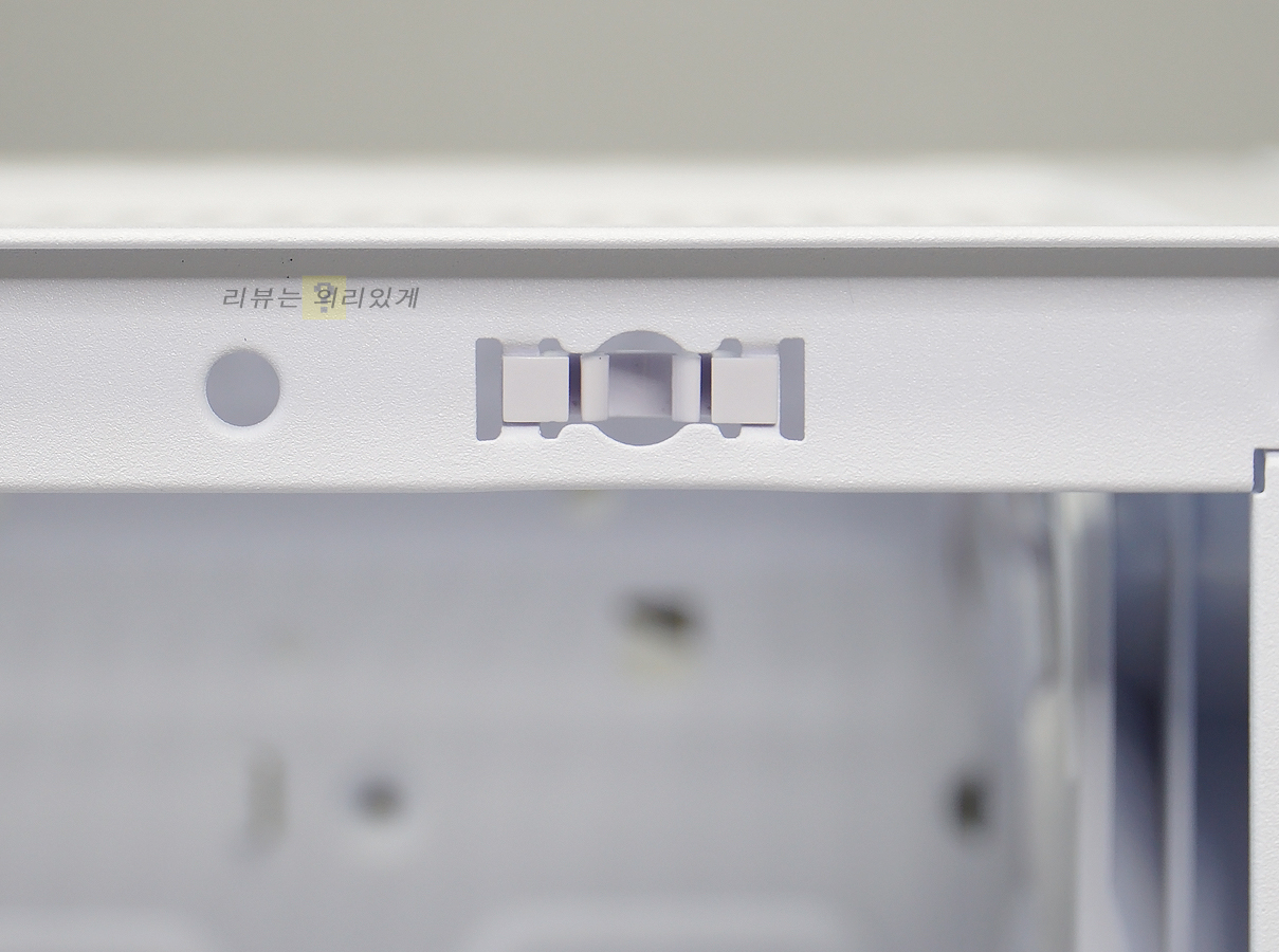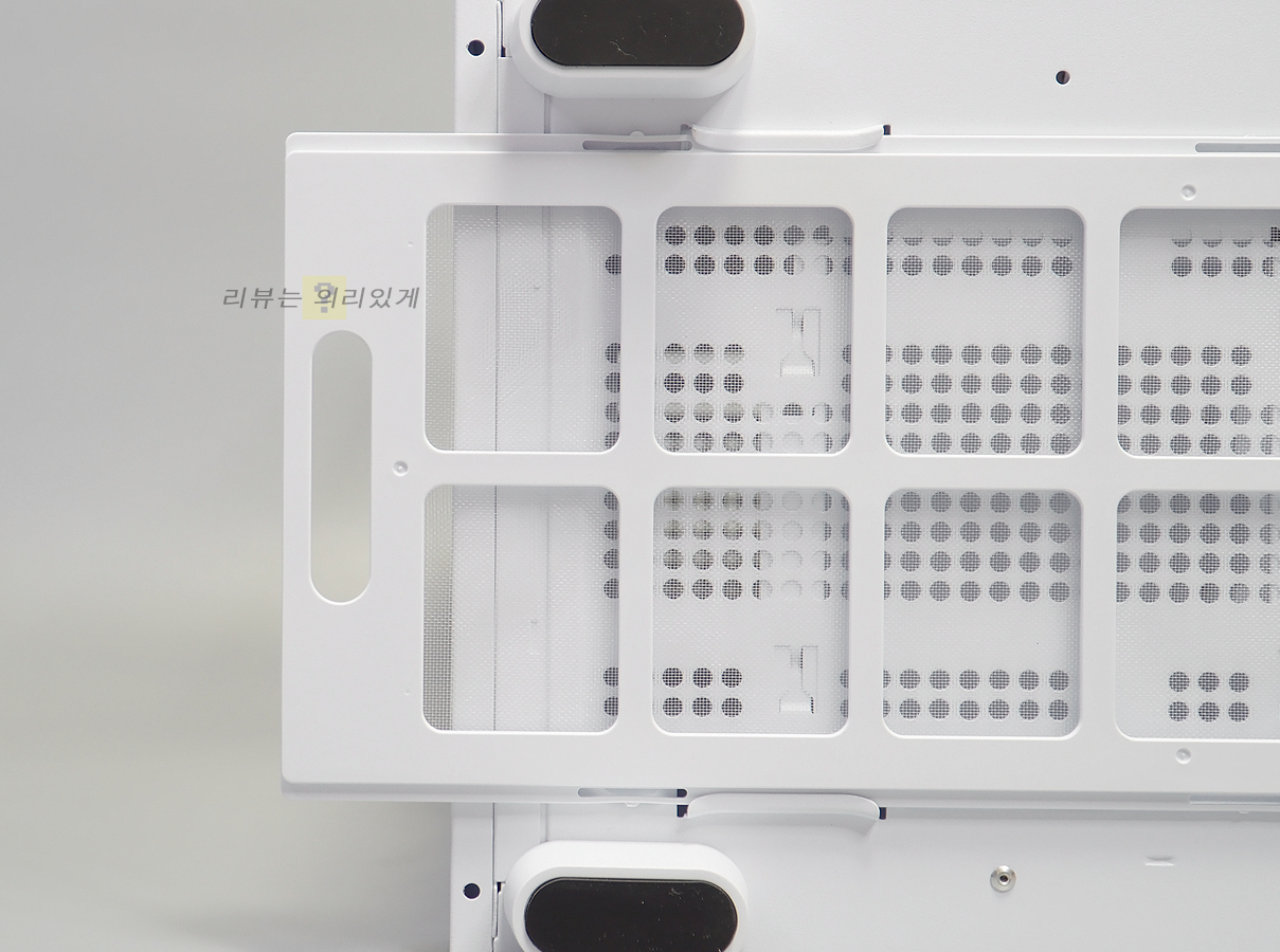 측면 패널의 경우 타공 구조와 함께 자석식 먼지 필터를 부착하였습니다. 측면 패널은 클램프 방식으로 장착됩니다.