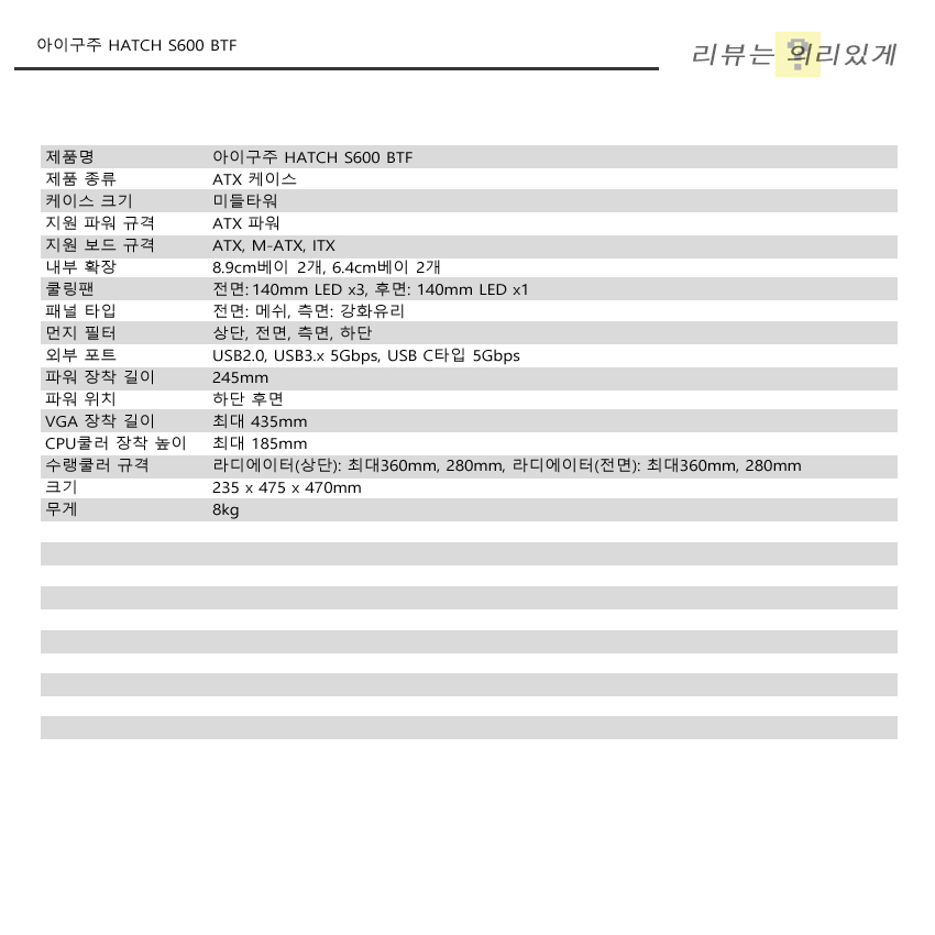 미들타워 ATX 케이스로 구분되며 지원 파워 규격은 표준-ATX입니다.