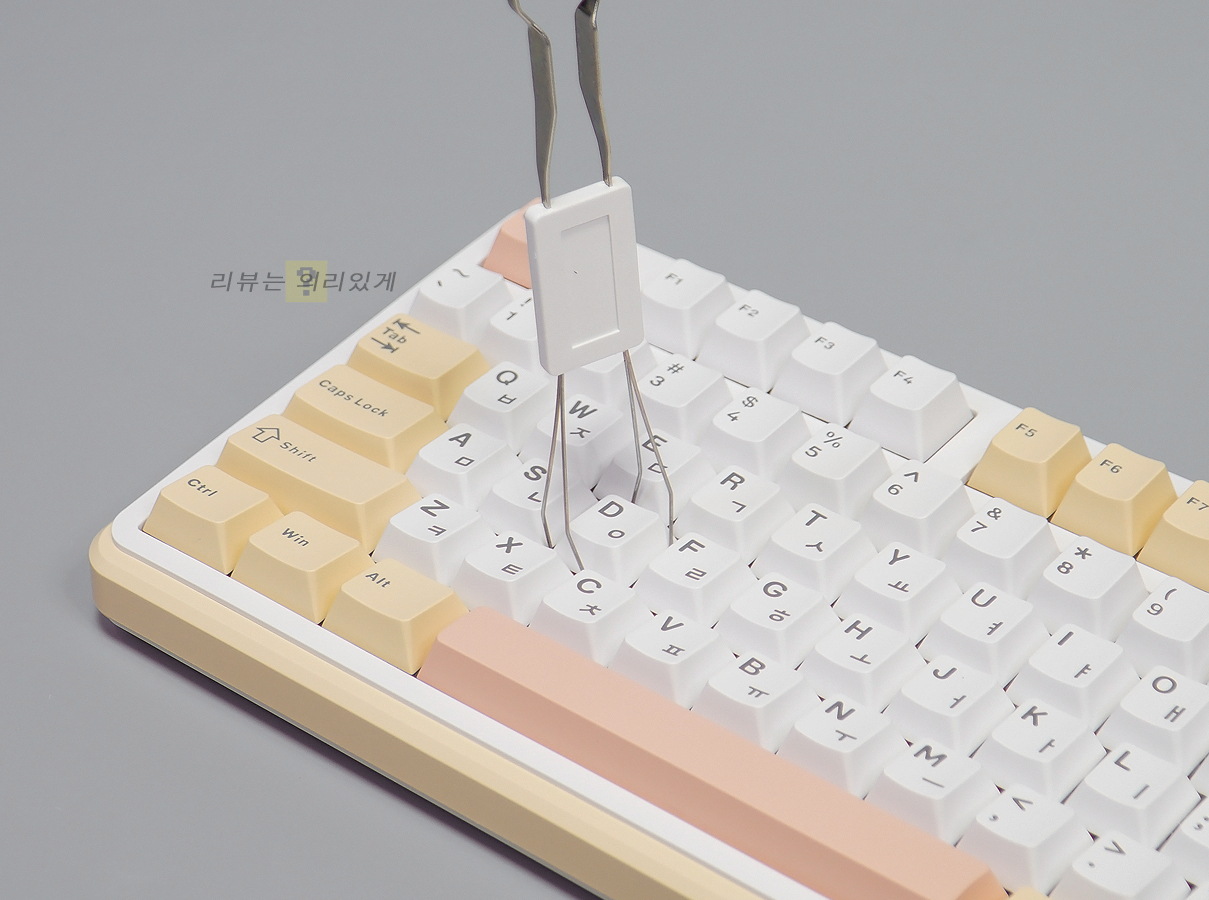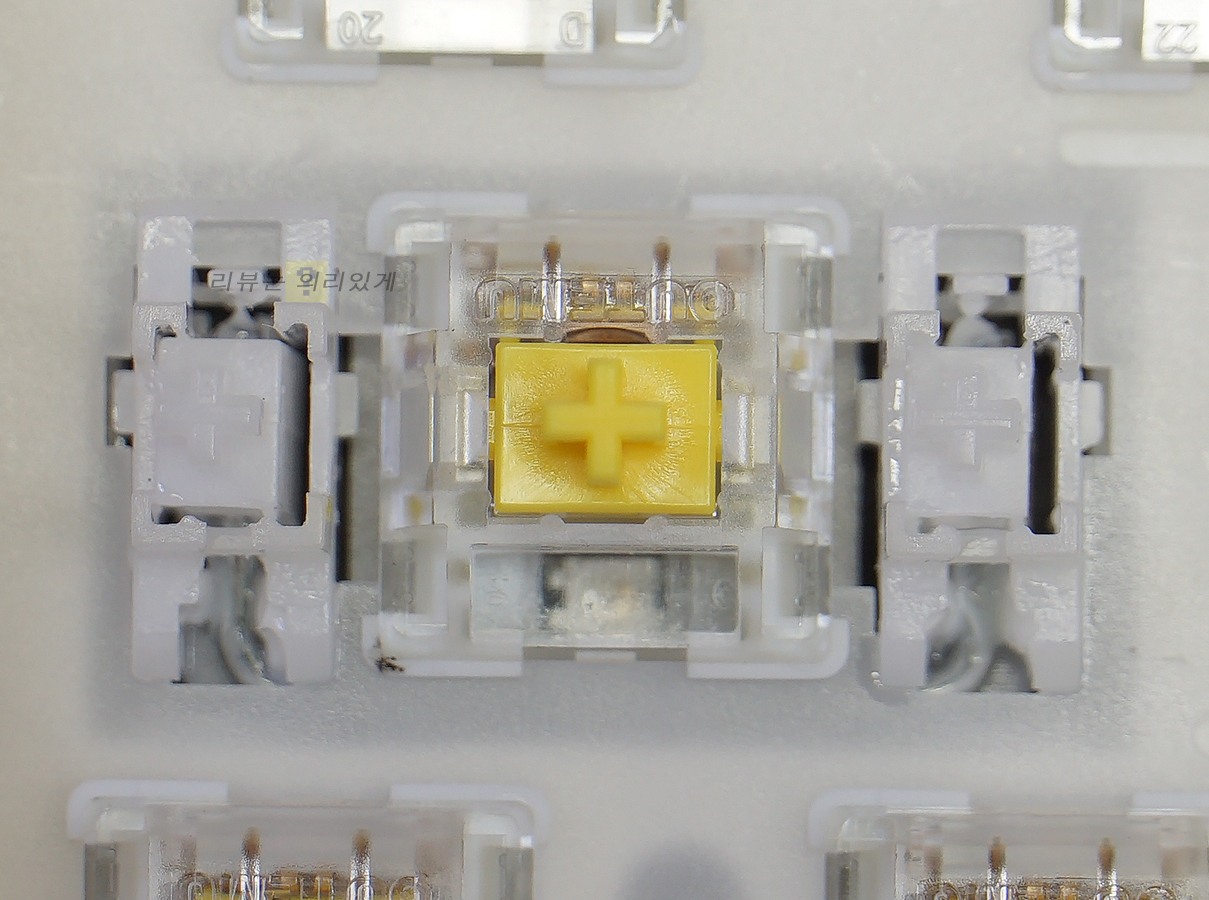 오테뮤 스위치를 사용하였으며 황축 V2와 아이스 화이트 축이 사용되었습니다. 본 리뷰에 사용된 제품은 황축 V2입니다.