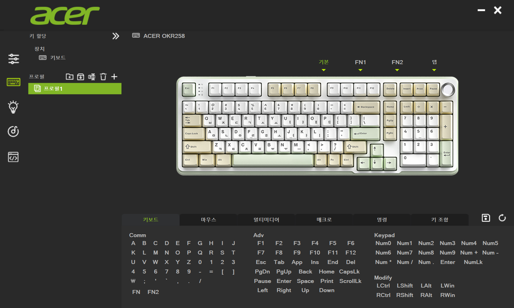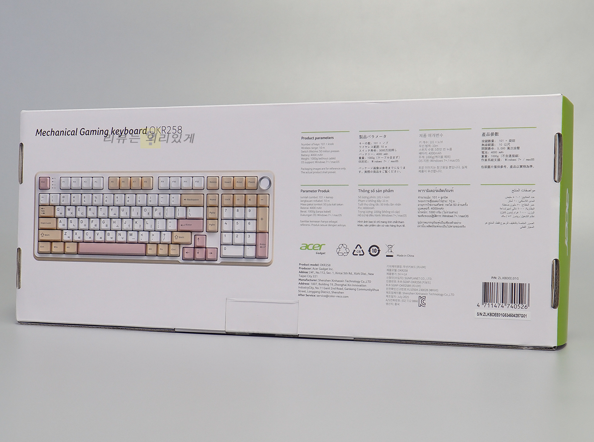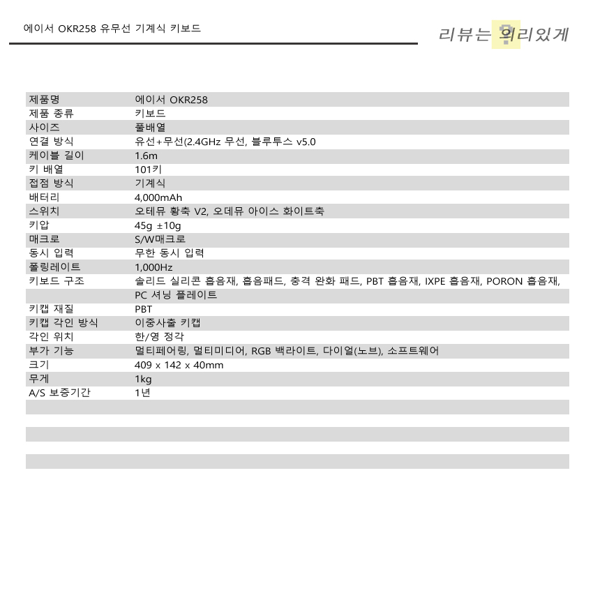 ▲ 에이서 OKR258 유무선 기계식 키보드 도각도각 타건