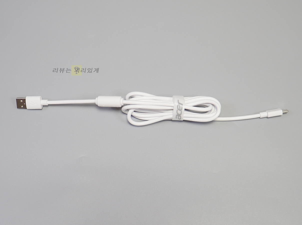 제공되는 케이블 길이는 약 1.6m로 일반적인 무선 모델이 1.8m인 것에 비해 약간 짧은 편입니다. 케이블에는 노이즈 필터를 부착하였습니다.