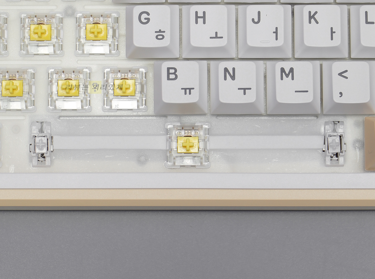 시프트 키와 스페이스바에는 체리식 스태빌라이저가 사용되었으며 부드러운 사용을 위해 윤활 처리를 하였습니다.