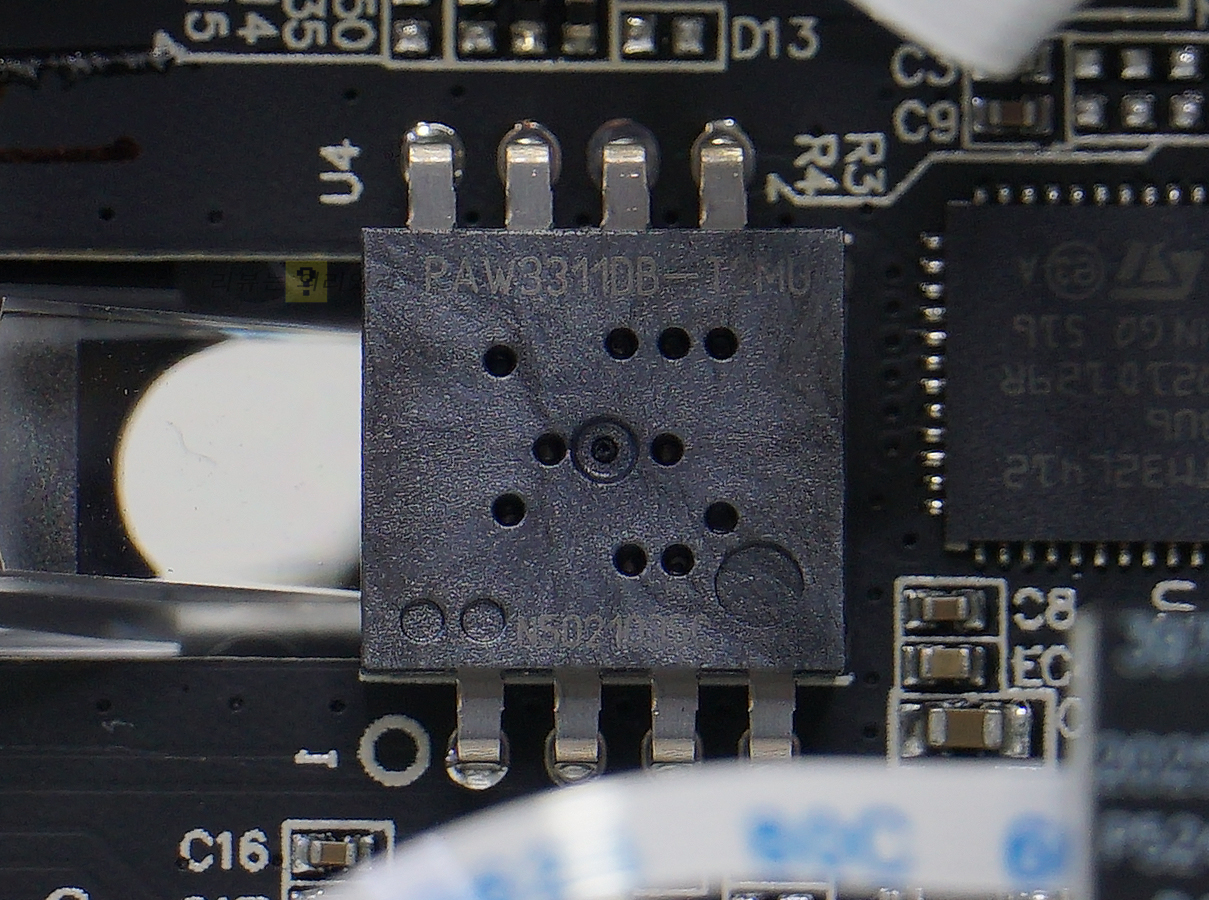 센서는 PixArt PAW3311DB-T2MU가 사용되었으며, MCU는 ST STM32L412CB가 사용되었습니다.