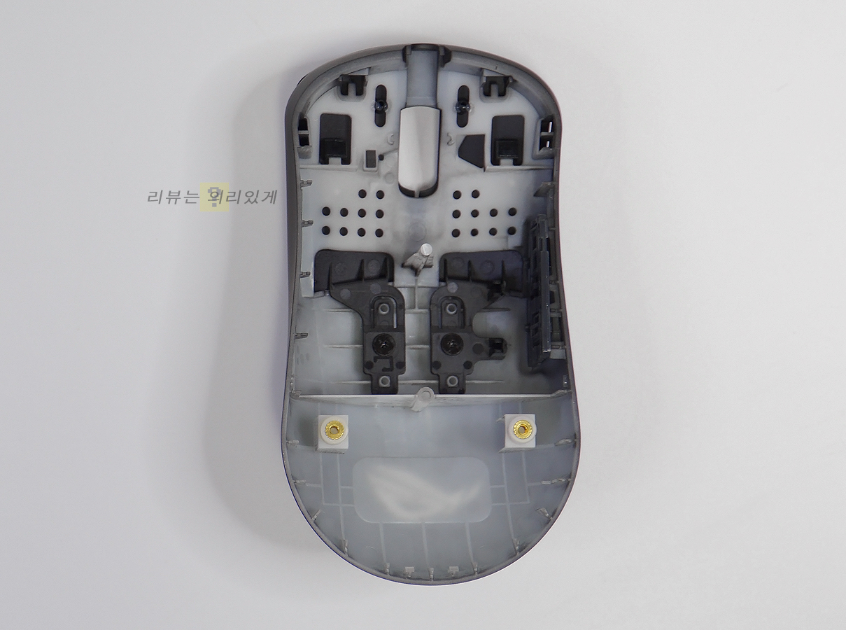 가벼워지고 있는 마우스들은 극단적으로 벌집형 모양의 프레임 같은 형태로 진화하거나 아니면 기존의 형태를 유지하는 두 가지 방식이 존재합니다. 전자의 경우 누가 봐도 가볍게 보일 정도로 다이어트를 하였지만 내부가 그대로 노출되어 외부 요인으로부터 결코 안전하지 않습니다.