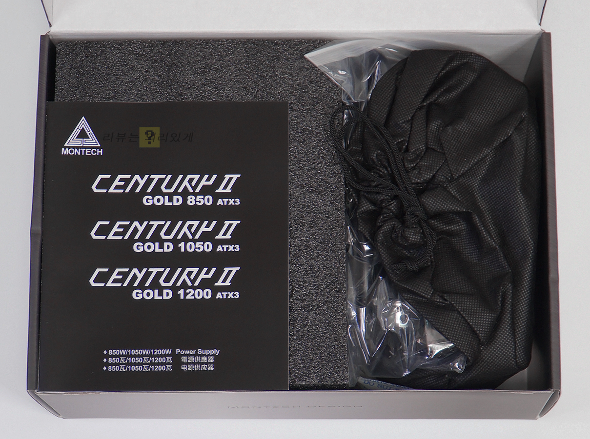MONTECH CENTURY II 850은 1,200W, 1,050W에 이어 850W로 이어지는 센추리 2 시리즈에 속하는 제품으로 풀모듈러 방식을 채택하였습니다. 이 방식은 모든 케이블이 파워에 연결되어 있는 고정식과 달리 원하는 케이블만 사용자가 연결할 수 있어 선정리와 시스템 내부 쿨링 등에 도움이 됩니다. 주로 어느 정도 가격대가 있는 제품들에서 볼 수 있는 방식입니다.
