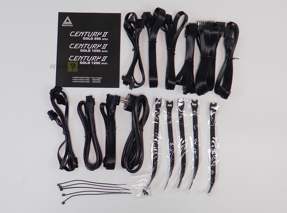 풀모듈러 방식으로 연결 케이블은 전용 파우치에 보관되어 있으며 파워 외에 시리즈 공용 설명서, 전원 케이블, 케이블 타이, 벨크로 타이가 구성품으로 제공됩니다.