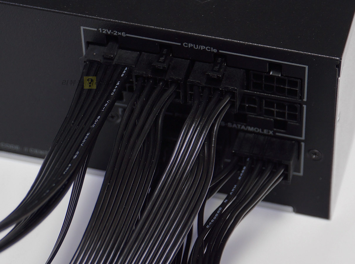 케이블은 16AWG, 18AWG가 각각 사용되었으며 PCIe 16핀(12+4) 12V2x6 케이블 일부에 26AWG가 사용되었습니다.