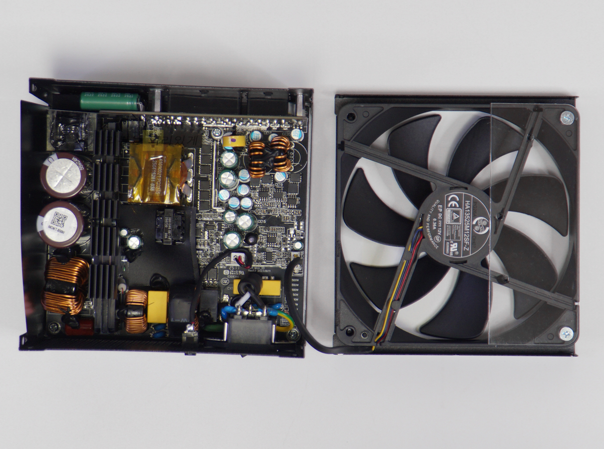 쿨링팬은 Hong Hua HA13525M12SF-Z 가 사용되었습니다. 일반적인 파워서플라이는 120mm 팬을 사용하고 있으나 이보다 좀 더 큰 135mm 팬을 사용함으로써 더 낮은 RPM으로도 충분한 풍량을 확보할 수 있어 소음 제어에 유리합니다. 특히 FDB(유체) 베어링이 사용되어 슬리브 베어링 대비 장기간 사용 시에도 소음과 성능 저하가 적다는 특징이 있습니다.
