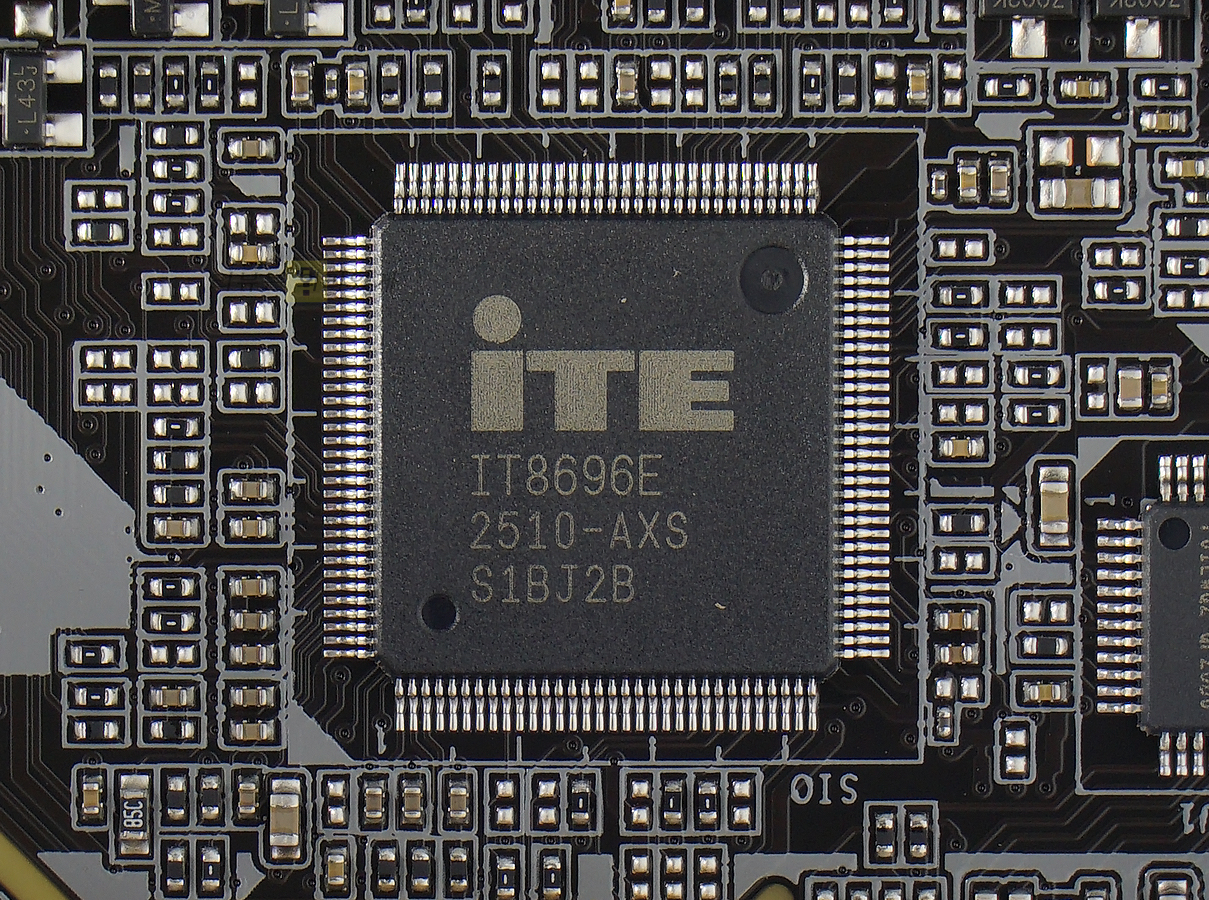 시스템 제어 및 모니터링을 위한 ITE IT8696E Super I/O 칩이 사용되었으며, 오디오 칩셋은 Realtek ALC897가 사용되었습니다. 네트워크 칩셋은 Realtek RTL8111H가 사용되었으며 전원부에는 RT3638AJ PWM 컨트롤러와 다수의 MOSFET(RA18B, RA12B 등)을 사용하였습니다.