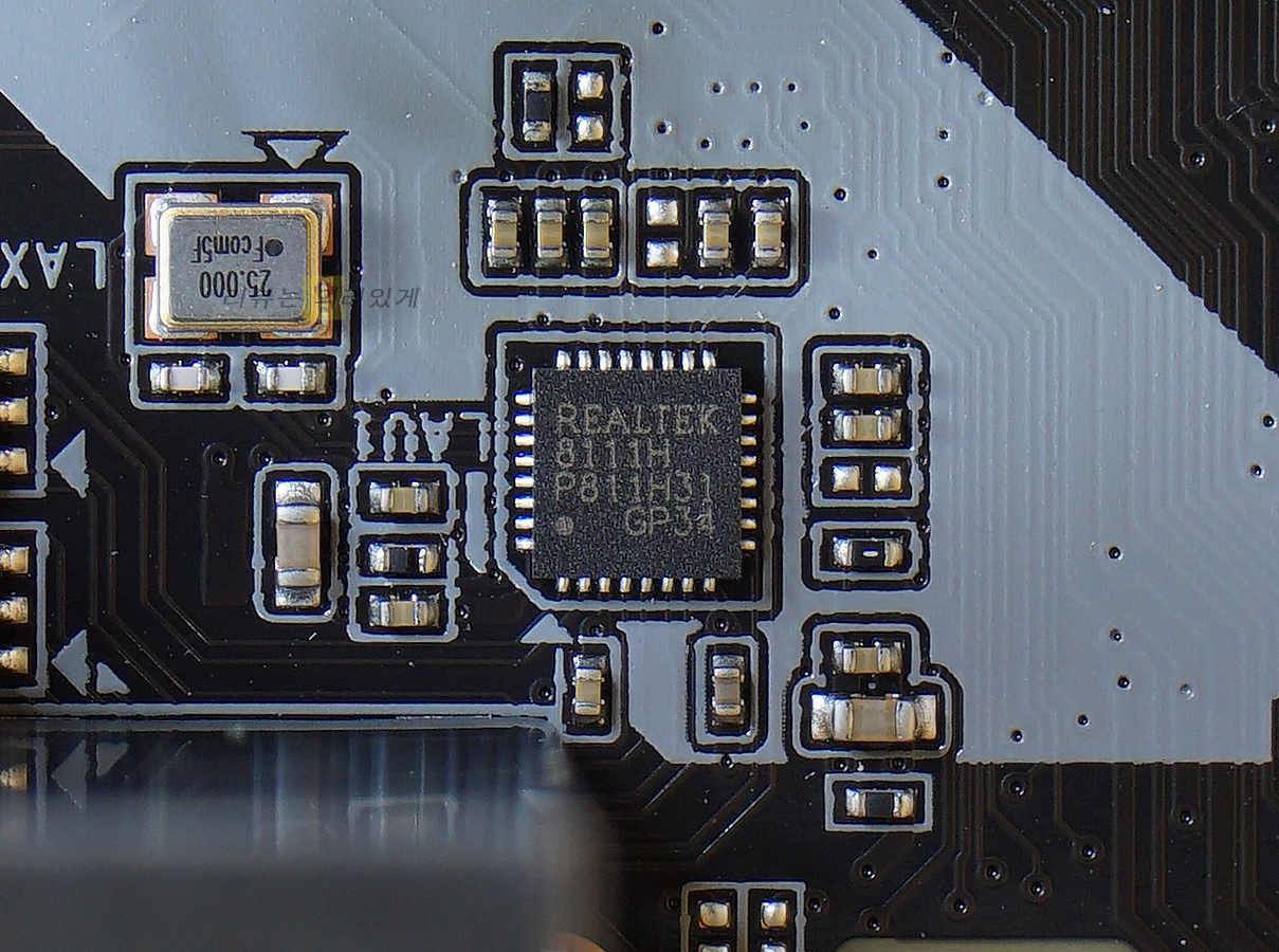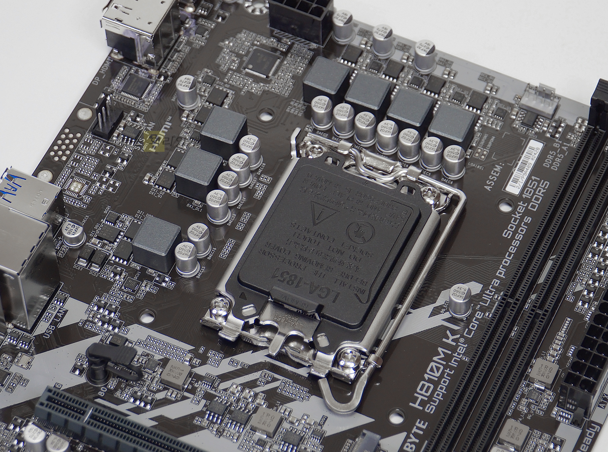 전원부는 3+1+2페이즈 구성으로 쿨링을 위한 방열판은 아쉽게도 제공되지 않습니다. 엔트리급 포지션을 겨냥하고 있으며 주로 오버클럭이 가능한 K 모델이 아닌 non-K 코어 울트라 3, 5와 같은 CPU를 사용하는 것이 좋아 보입니다.