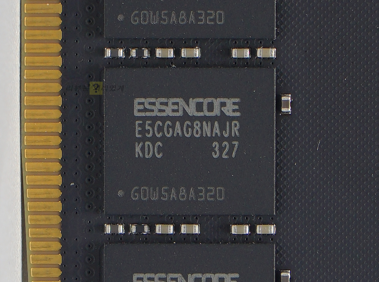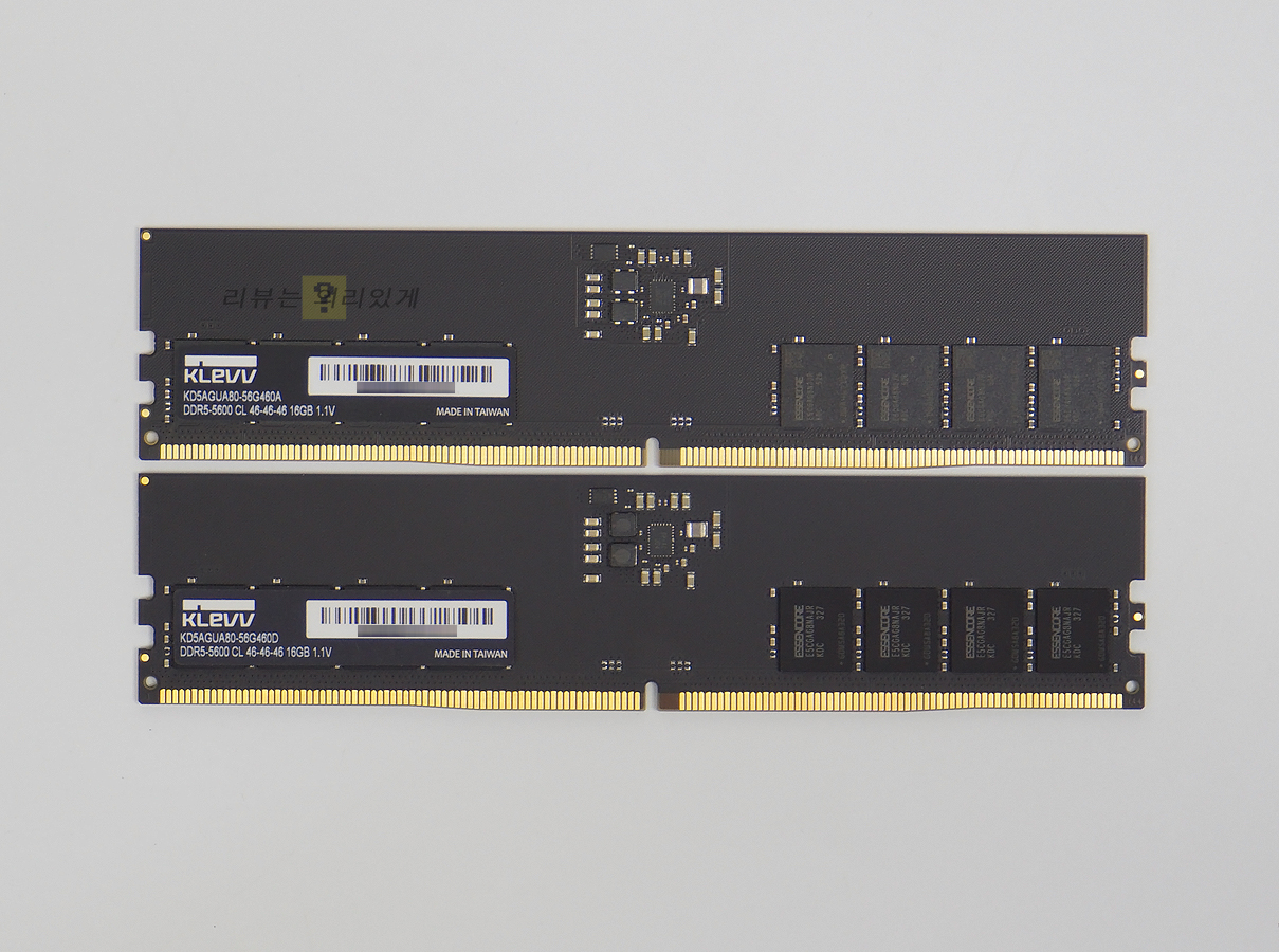 에센코어는 SK하이닉스의 자회사로 주로 SK하이닉스의 메모리를 가져다가 DRAM 메모리 모듈을 활용해 RAM과 SSD를 생산하고 있습니다. 이는 특히 DDR5 RAM에서 SK하이닉스 메모리 칩을 사용한 제품을 선호하는 분위기에 적합한 제품이라 할 수 있는데 단순히 안정성이 좋은 것도 있지만 오버클럭 잠재성이 높은 이유도 있습니다. 그중 DDR5-5600 메모리는 가장 기본적인 제품이라 할 수 있는데 방열판이 없는 제품이지만 ESSENCORE KLEVV DDR5-5600 CL46은 SK하이닉스 A-다이를 사용하고 있어 좋은 메인보드를 사용한다면 높은 클럭 향상을 기대할 수 있을 것입니다.