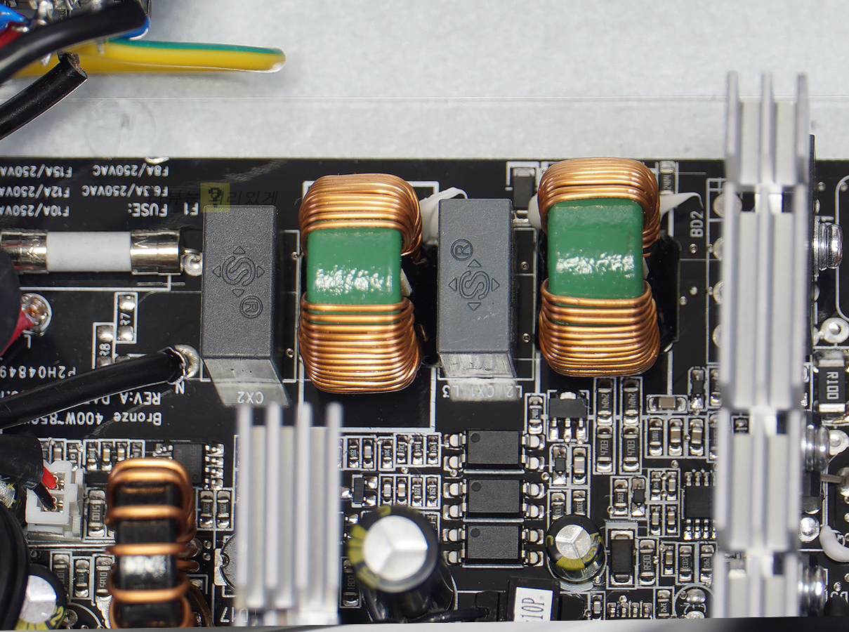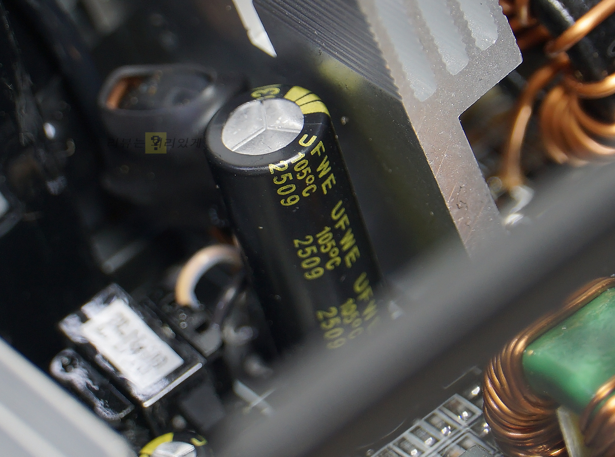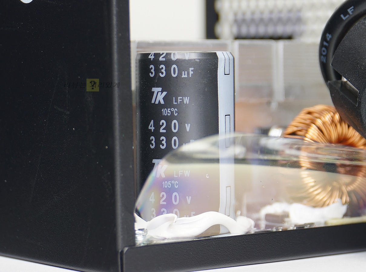 PFC 회로는 액티브 PFC가 사용되었으며 DC to DC 설계는 적용되지 않았습니다. 양쪽에는 쿨링을 위한 방열판을 부착하였습니다.