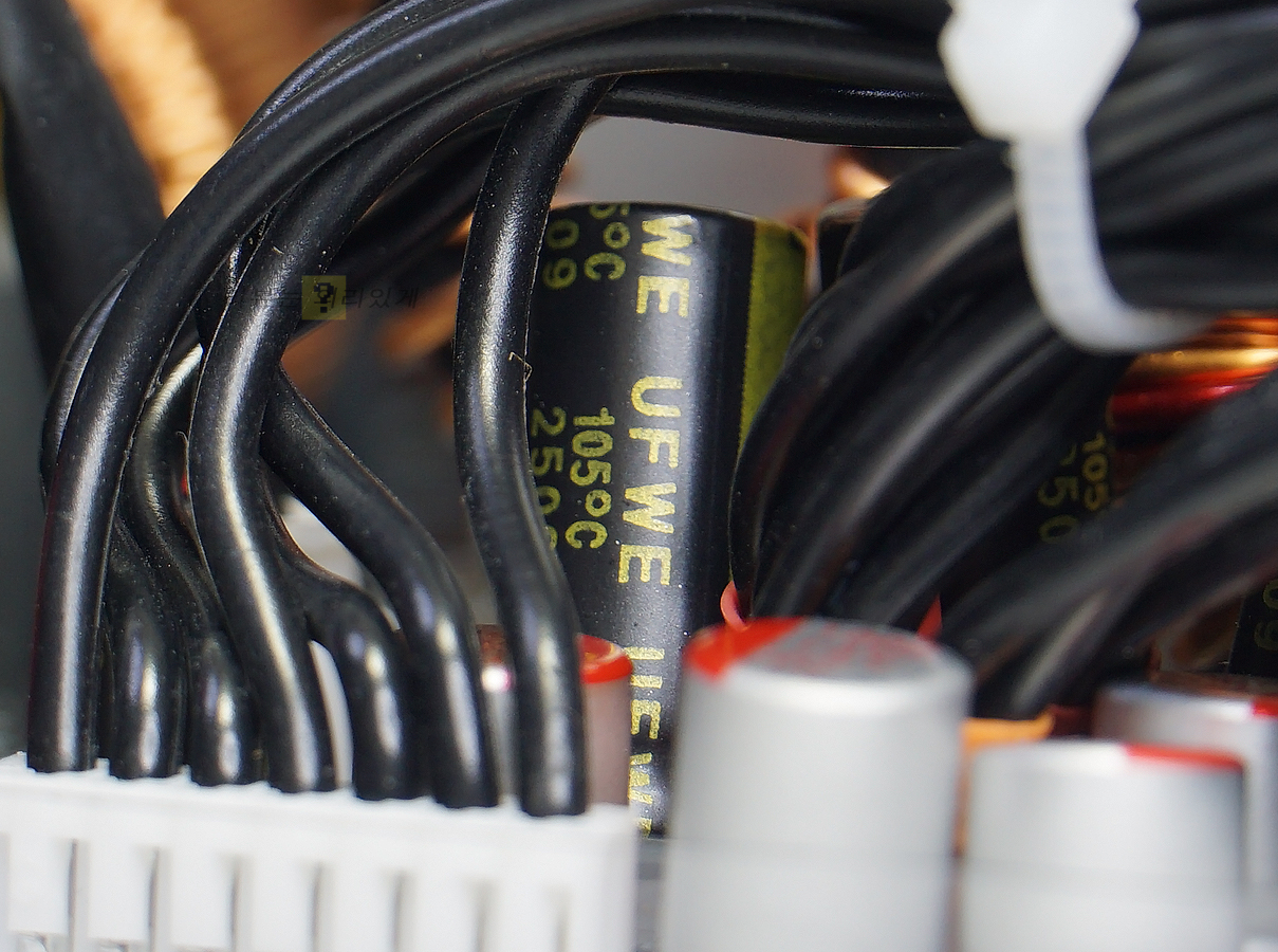 메인 전원 24핀(20+4) 외에 보조전원 (4+4) 핀이 제공되고 있으나 1개만 부착되어 있습니다. 같은 용량의 제품에서 보조전원 (4+4) 핀을 2개 추가한 경우가 있는 것을 감안하면 아쉽게 느껴질 수 있습니다. 최신 규격 메인보드를 사용하더라도 하이엔드 그래픽카드가 아닌 엔트리 또는 내장 그래픽을 사용하는 경우가 있기 때문에 600W 용량 파워에서 보조전원을 1개만 제공하는 것은 아쉽게 느껴질 수 있습니다.