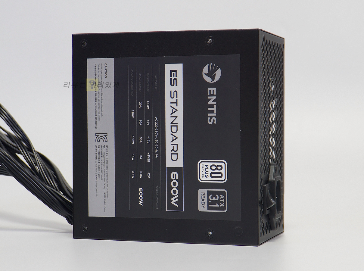 엔티스 ES 스탠다드 시리즈는 500W부터 800W까지 다양한 용량으로 출시되었습니다. 리뷰에 사용된 제품은 600W 모델로서 고사양에 적합하지는 않지만 적당한 스펙의 컴퓨터에 사용하기 무난한 정도입니다. 여기에 80 PLUS 스탠다드 효율 인증과 함께 ATX 3.1 규격이 적용되어 보급형 파워이지만 제품 가격대를 감안하면 제공되어야 할 것은 대체로 적용되어 있다고 생각됩니다.