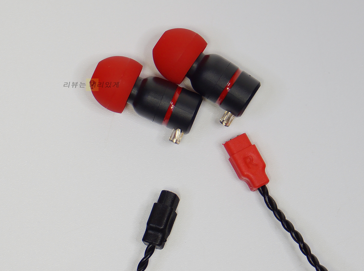 케이블은 앞서 말한 바와 같이 꽈배기 같은 형태의 트위스트 케이블 방식이 사용되었습니다. 게이밍 이어폰인 만큼 마이크가 추가되었으며 Y자 형태로 분리되는 형태를 사용하였습니다. 일부 제품의 경우 분리되는 위치가 너무 위에 위치하고 있어 얼굴 등에 닿는 경우가 있는데 착용감이 좋아지기보다는 불편하게 느껴지기 때문에 선호하지 않습니다.
