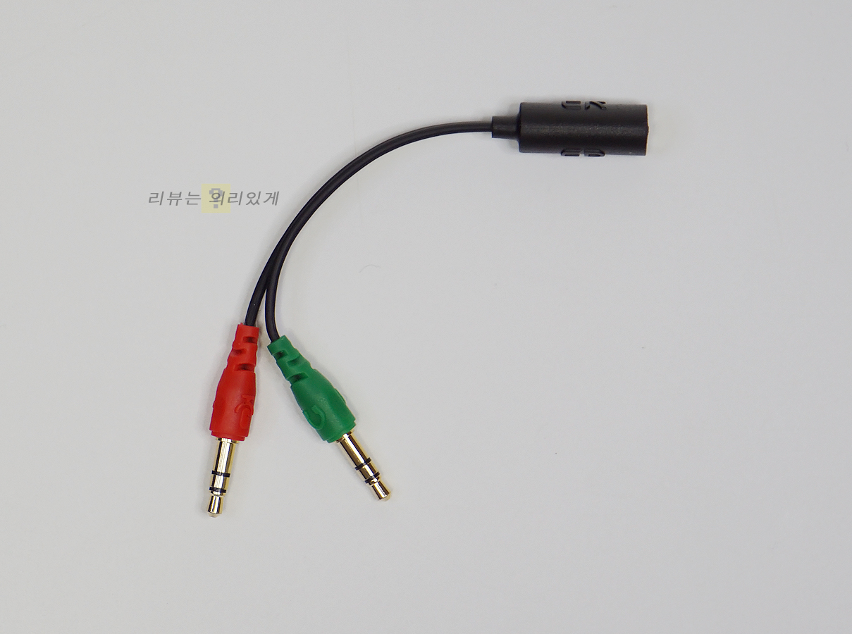 케이블 선정리를 할 수 있도록 벨크로 타이가 제공되고 있으며 케이블이 고정되어 있는 방식은 아니었습니다. 이어폰은 3.5mm 단자 방식을 사용하여 컴퓨터, 노트북과 같은 기기에 사용하게 되며 금도금 처리를 하였습니다.