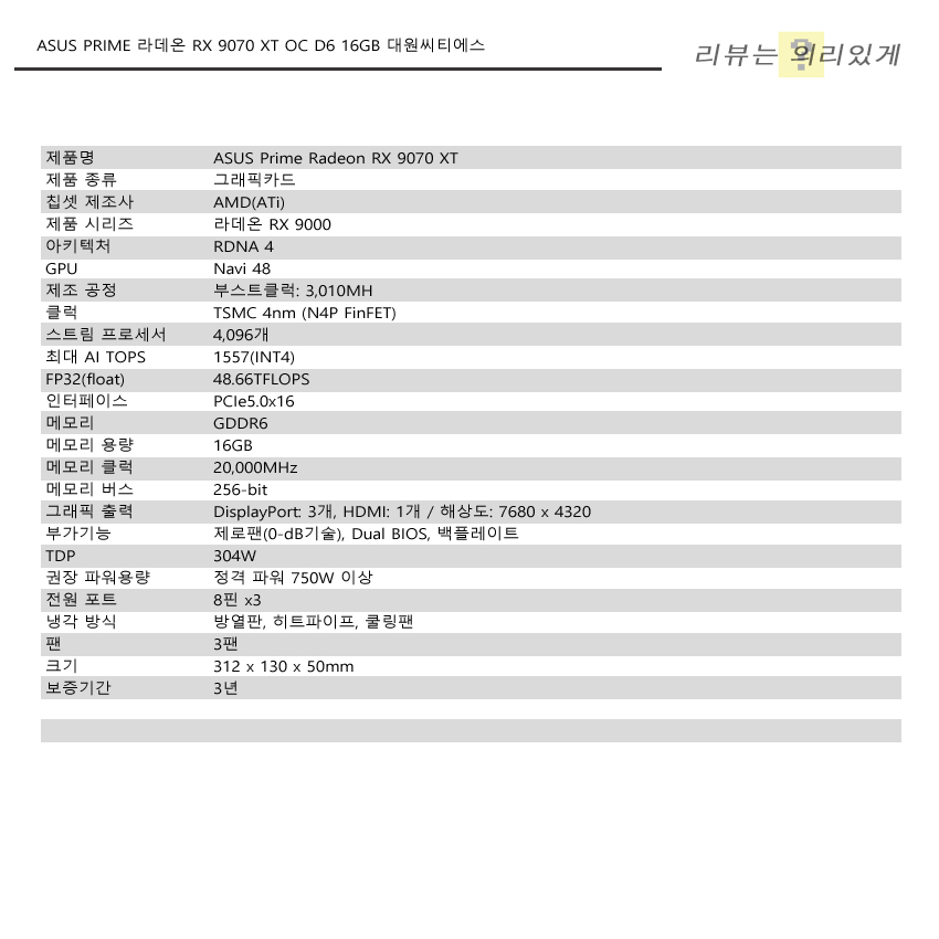 AI GPU 수요 증가와 함께 상승하기 시작한 RAM 가격은 날로 치솟고 있고 이제는 SSD에서도 그 영향을 확인할 수 있습니다. 이는 당연하게도 메모리를 사용하는 그래픽카드에도 반영된다는 것을 의미합니다. 지금 당장은 AMD가 RX 9070 XT와 같은 제품에 집중하고 있어 가격 조정이 크지 않는 것으로 보이는데, 리뷰에 사용된 ASUS PRIME 라데온 RX 9070 XT OC D6 16GB의 경우 작성일 기준 매우 합리적인 가격대에 구매할 수 있는 상황입니다.